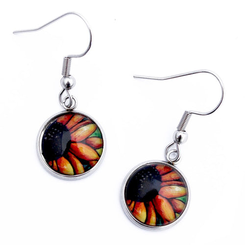 Kathy Lycka - Earrings Circle Orange Sunflower